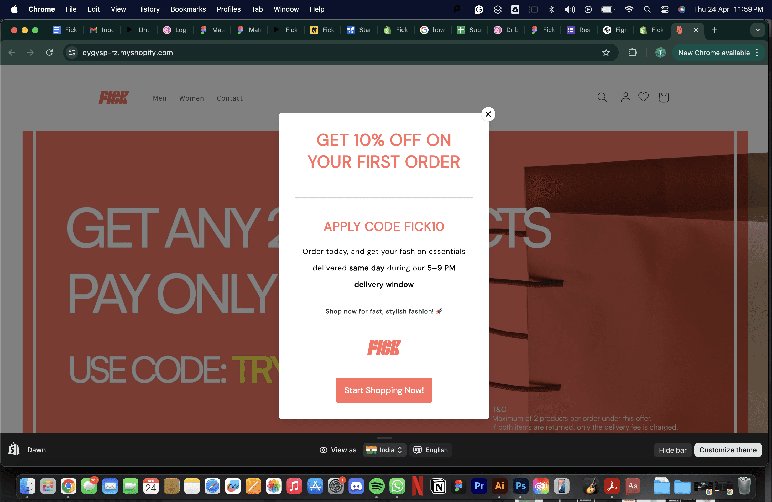 To get the website live, I had to learn Shopify from scratch, how to set up a store, add products, enable features like infinite scroll, favourites, and real-time stock updates. All of this had to be figured out and executed in just one week. But after nights of trial, errors, and fixing, the first version finally went live.