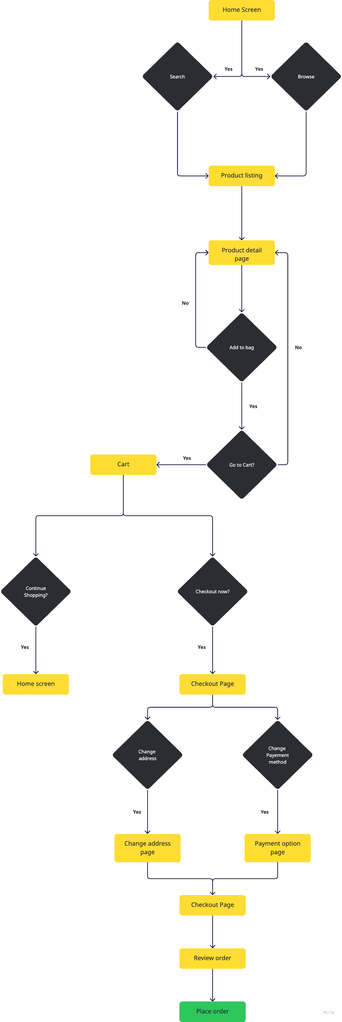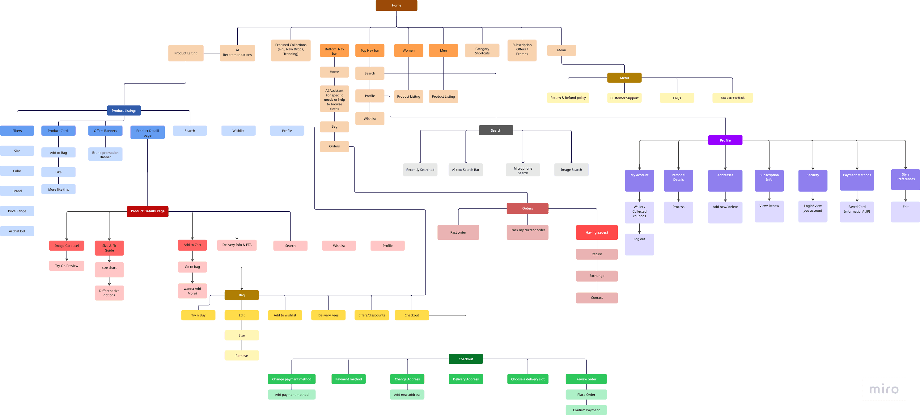 With the structure in place, we mapped the actual journey. From landing on the app to discovering outfits to checking out, the user flow helped us visualise every step clearly and remove anything that slowed the experience.